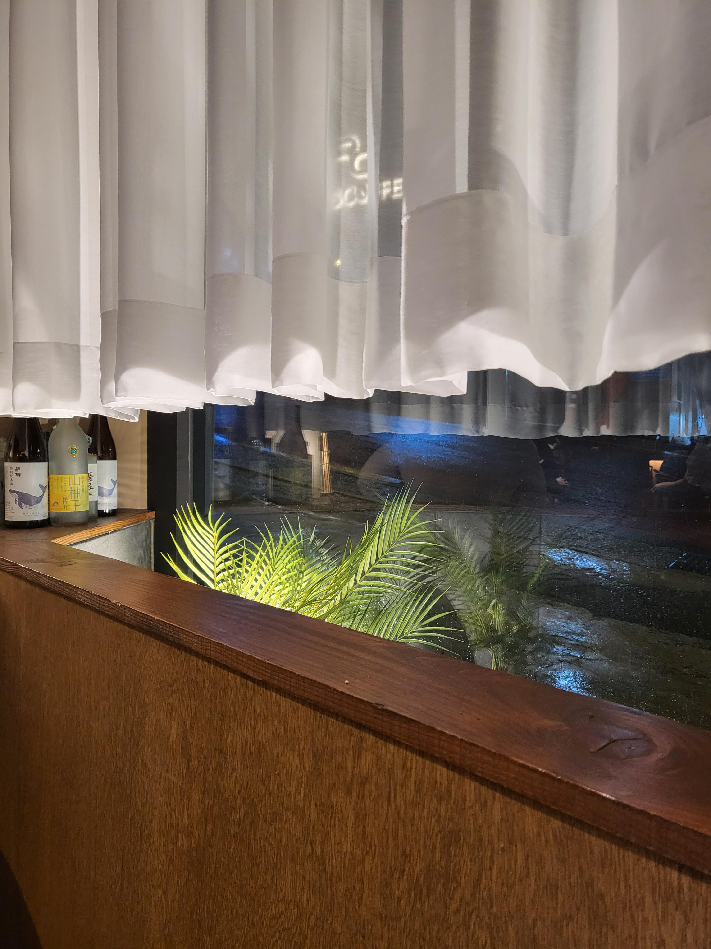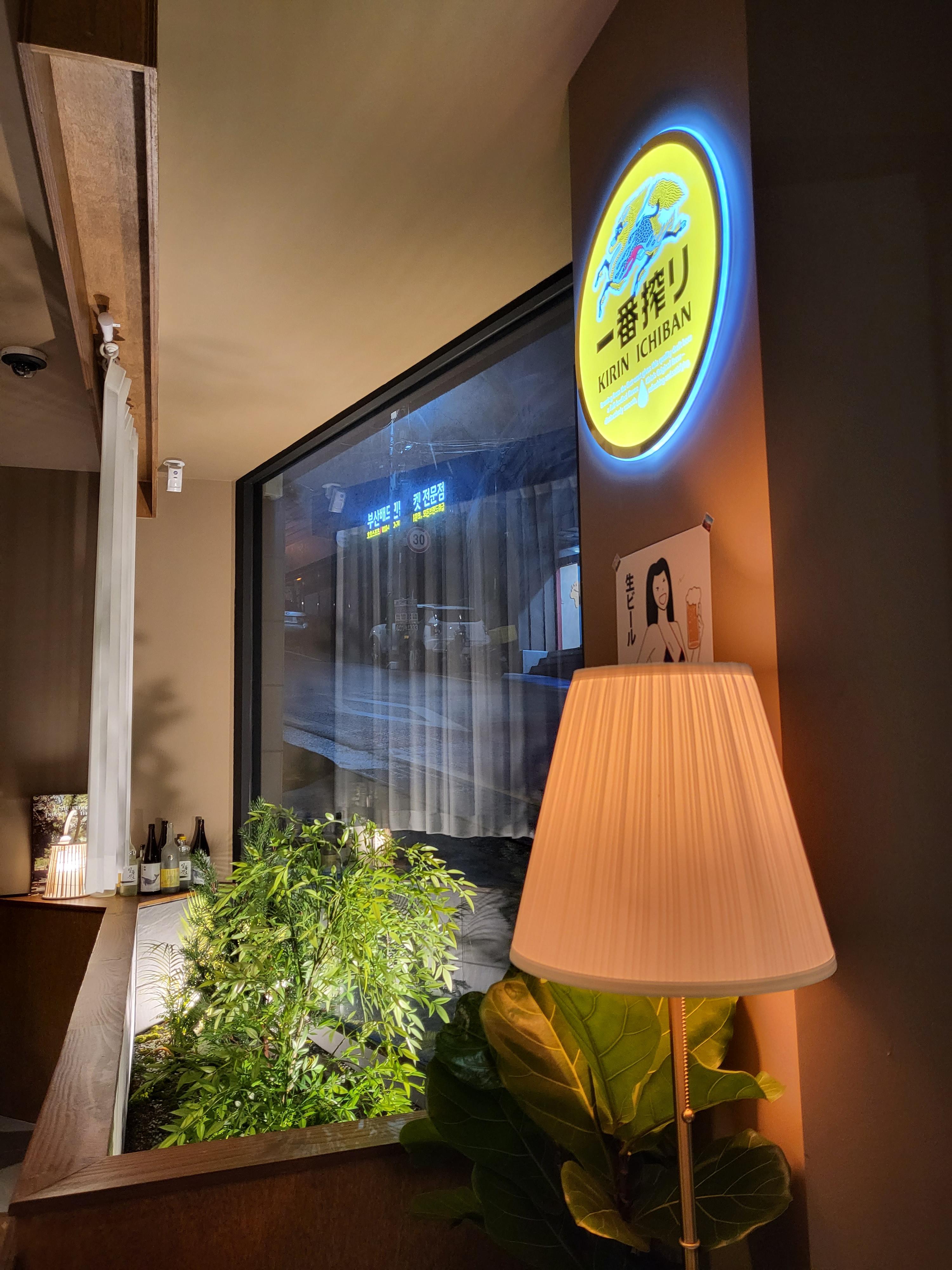 노란 조명이랑 초록식물이